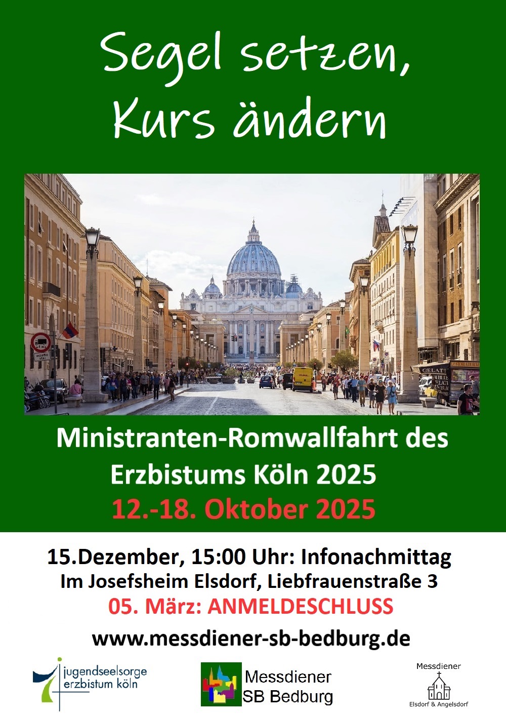 Vielen Dank! ...für Ihre Unterstützung von Mai bis Oktober! Dank Ihnen konnten wir in Bedburg und Elsdorf Über 4000 Euro an Spenden für unsere Romwallfahrt sammeln. Damit konnten wir in Rom Museumsbesuche, gemeinsame Abendessen und das ein oder andere leckere Eis finanzieren. Ihre Unterstützung hat unsere Wallfahrt zu einem unvergesslichen Gemeinschaftserlebnis werden lassen! Wir hoffen, dass unsere Postkarten bei allen Teilnehmenden der Postkartenaktion angekommen sind. Hier ist ein Bericht unserer gemeinsamen Fahrt zu sehen: |
